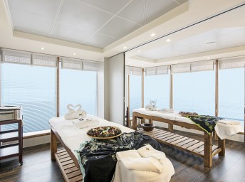 Suite s balkónom: cca 27m² kajuta s manželskou posteľou (na požiadanie 2 oddelené postele) a rozkladacia pohovka. Klimatizácia, kúpeľňa s vaňou, toaletný stolík, priestorná skriňa, TV, telefón, minibar, sejf, sušič na vlasy. Balkón so stolíkom a stoličkami. Internetové pripojenie (za poplatok).