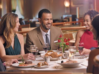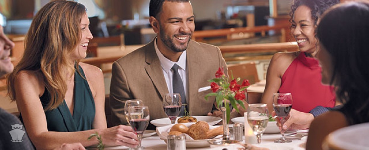 Anytime Dining: Podobne ako v reštaurácia na pevnine, večerajte s kýmkoľvek podľa vášho priania, kedykoľvek v čase od 17:00 do 22:00.
