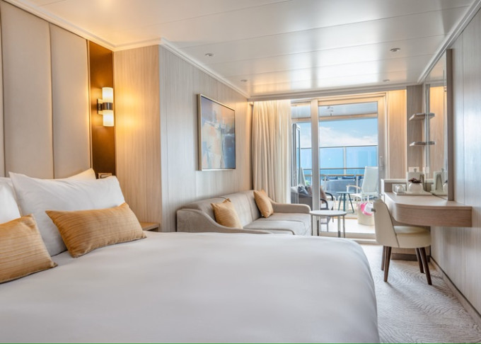 S2 - Signature Owner Suite 59 m² (vrátane balkonu). 10. paluba v strede, 16. paluba na korme. Max 4 osoby. Šatník, kúpeľňa s vaňou, oddelené WC, kávovar Nespresso. Výhody Signature Collection. 22 130 € 11 065 € za osobu