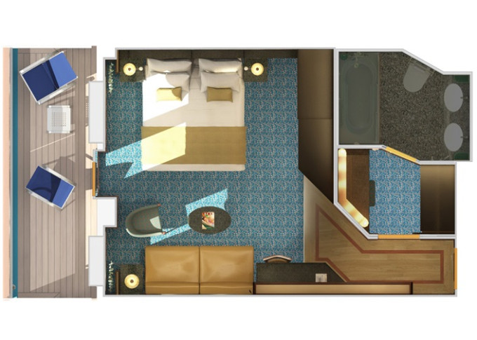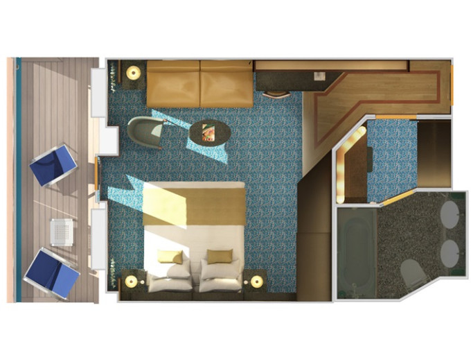 8S - Kajuta s balkónom Cloud 9 Spa 17 m² + balkón 3 m². 12. paluba vpredu. Voľný vstup do Spa a balíček Cloud 9 Spa. | 1 086 € 543 € za osobu |