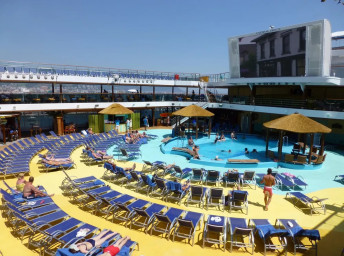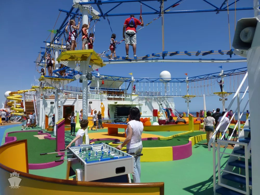 - Využívanie fitness centra, sauny, bežeckej dráhy, bazénov, víriviek, tobogánov a vodného parku (na vybraných lodiach), mini golf, basketbal, volejbal, stolný tenis, knižnica
