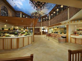 - Plná penzia v hlavných reštauráciách Main Dining Room, v bufetových 24/7 reštauráciách Lido, v 24/7 pizzerii
