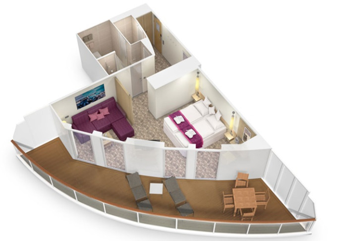 SB - Suite PREMIUM 45 m² + balkón 38 m². 17. paluba. Max 5 osôb. Cenový model Premium + výhody Suite. | 7 990 € 3 995 € za osobu |
