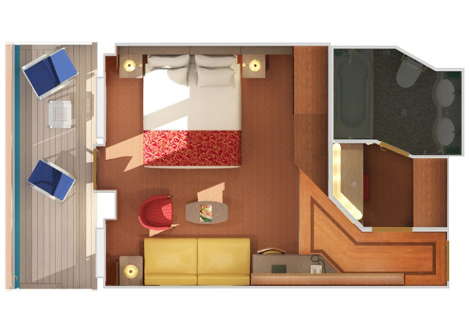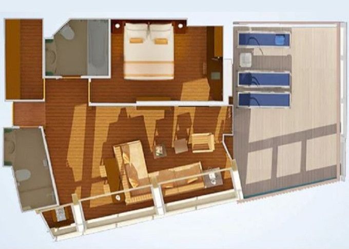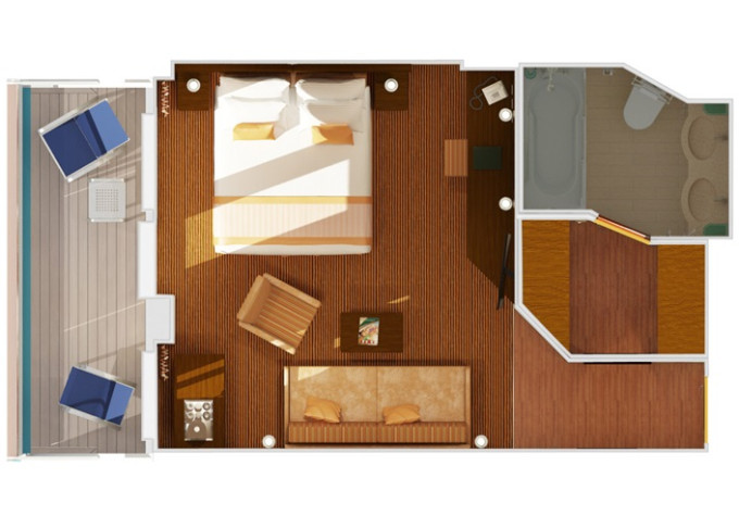 OS - Ocean Suite 25 m² + balkón 6 m². 7. paluba vpredu, stred. Max 4 osoby. Výhody Suite. | 1 352 € 676 € za osobu |