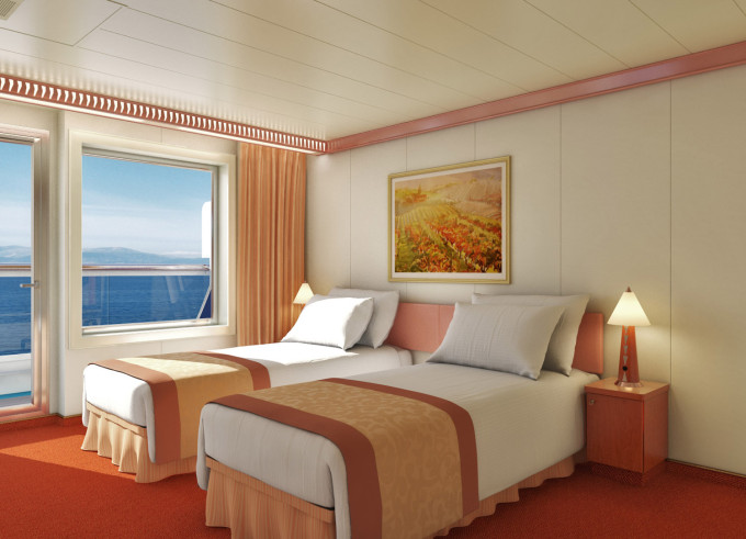 8N - Kajuta s väčším balkónom Aft-View 17 m² + balkón 5,5 m². 8. paluba vzadu. Max 3 osoby. | 914 € 457 € za osobu | ||