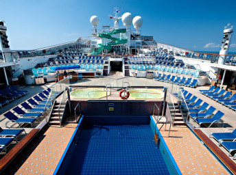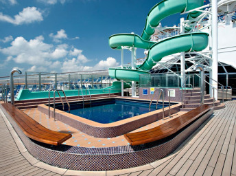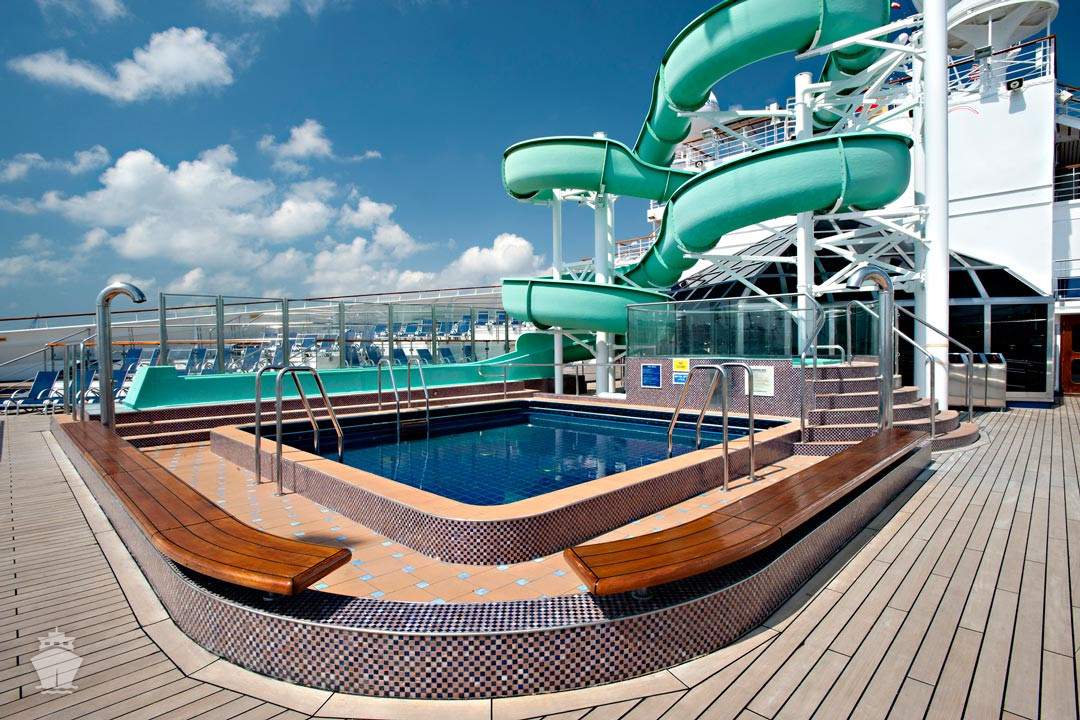- Využívanie fitness centra, sauny, bežeckej dráhy, bazénov, víriviek, tobogánov a vodného parku (na vybraných lodiach), mini golf, basketbal, volejbal, stolný tenis, knižnica
