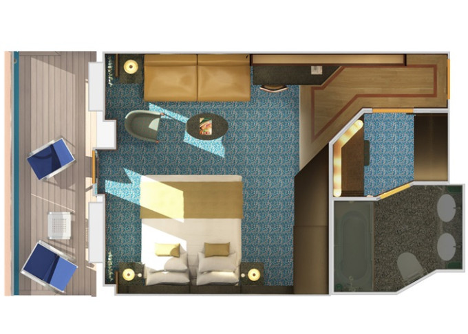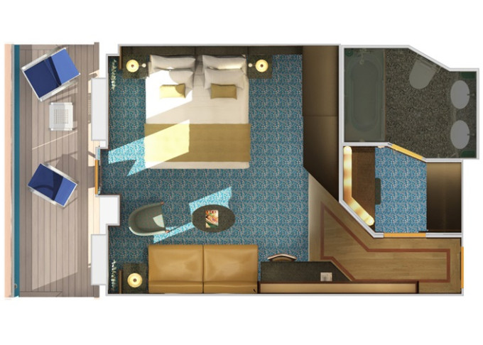 8S - Kajuta s balkónom Cloud 9 Spa 17 m² + balkón 3 m². 12. paluba vpredu. Voľný vstup do Spa a balíček Cloud 9 Spa. | 1 376 € 688 € za osobu | ||