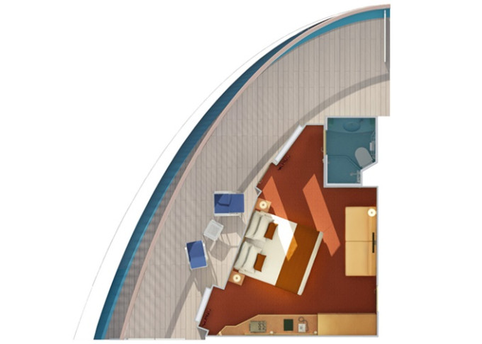 SS - Suite Cloud 9 Spa 25 m² / balkón 6 m². 11. paluba vpredu. Max 3 osoby. Výhody Suite. Voľný vstup do Spa a balíček Cloud 9 Spa. | 2 464 € 1 232 € za osobu |