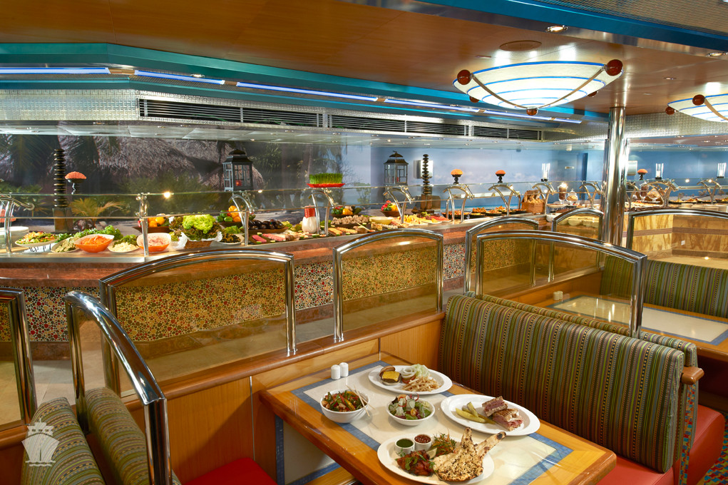 - Plná penzia v hlavných reštauráciách Main Dining Room, v bufetových 24/7 reštauráciách Lido, v 24/7 pizzerii
