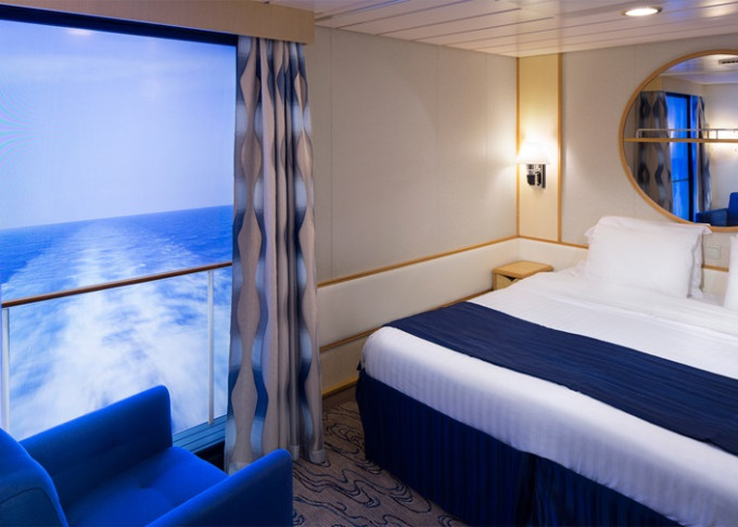 4U - Vnútorná kajuta s virtuálnym balkónom 15 m². Obrazovka veľkosti balkónových dverí s premietaným výhľadom. Max 2 osoby. | 2 499 € 2 499 € za osobu |