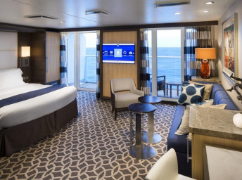 J4 - Junior Suite s balkónom 26 m² + balkón 4,5 m² / niektoré kajuty majú obmedzený výhľad. Max 2 osoby. Výhody Junior Suite. | 4 908 € 2 454 € za osobu |