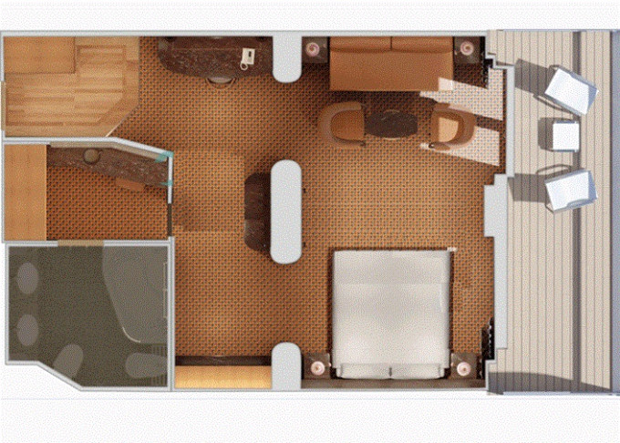 OS - Ocean Suite s balkónom cca 38 m² vrátane balkóna. 6,7,8. paluba stred. | 1 284 € 642 € za osobu |