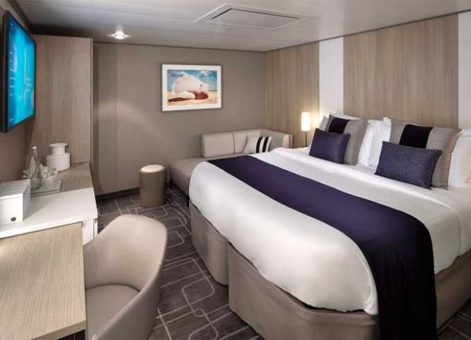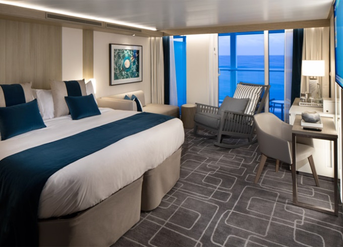 • Kajuty sú umiestnené v blízkosti lodného Spa. K ich vybaveniu patrí posilnený systém vzdušnej filtrácie, posteľ Queen-Size (v kategóriách Edge King-Size), veľké zasúvacie sklenené dvere, exkluzívne posteľné prádlo eXhale®, veľkorysé skladovacie priestory.