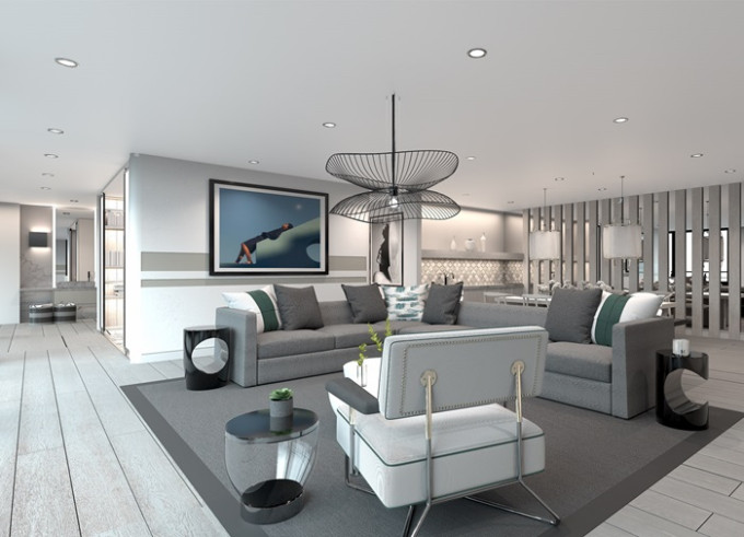 PS - Penthouse Suite 128 m² + balkón 18 m². 2 spálne, 2 kúpeľne (1 s vírivkou). 12. paluba. Max 6 osôb. Výhody Suite Retreat. 73 864 € 18 466 € za osobu