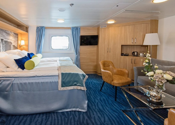 Q2 - Expedition Mini Suite 16-19 m². Neotvárateľné okno. Obývacia časť, Tv, WiFi, minibar, varná kanvica. 5, 6. paluba. Max 2 osoby. Výhody Suite. | 7 208 € 3 604 € za osobu | ||
