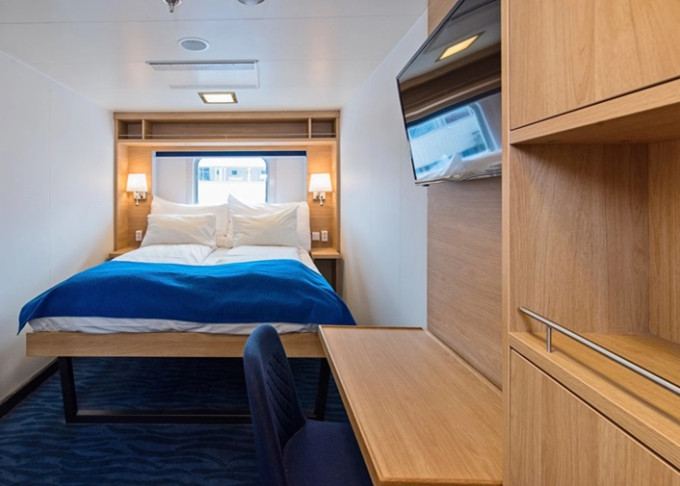 P2D - Vonkajšia kajuta Arctic Superior 10 m². Neotvárateľné okno. Manželská posteľ, Tv, varná kanvica. 5. paluba. Max 2 osoby. | 4 382 € 2 191 € za osobu | ||