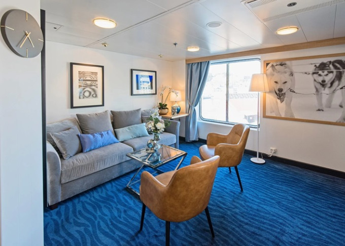 MS Polarlys bola v roku 2016 zrekonštruovaná a jej moderný interiér je inšpirovaný Arktídou.