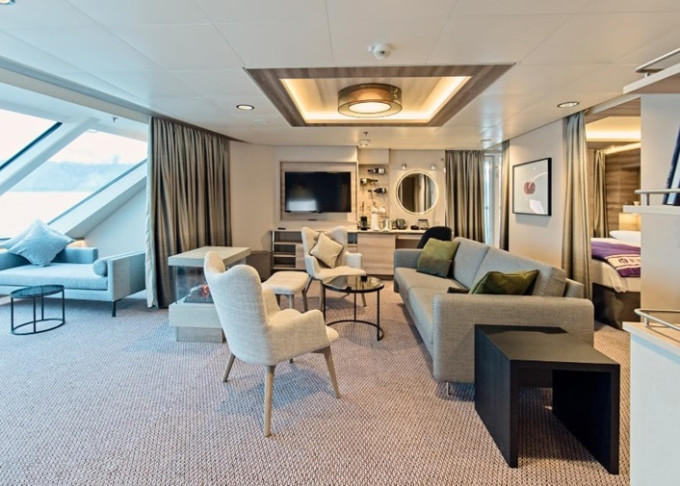 ME - Expedition Suite s balkónom 20-28 m². Balkón. TV, minibar, varná kanvica, kávovar. 8,9. paluba. Max 4 osoby. Výhody Suite. | 21 934 € 10 967 € za osobu | ||