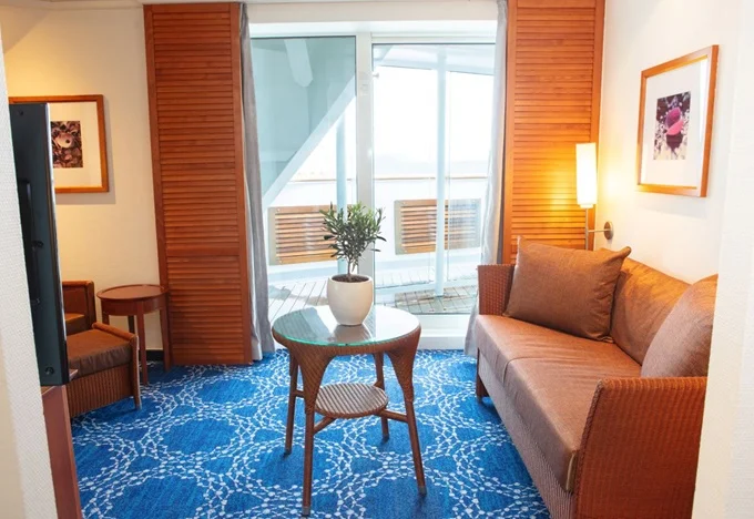 SJB - Junior Dream Suite s balkónom kajuta 21 m² / balkón 6 m² . Max 3 osoby, 9. paluba. Stolovanie vo vyhradenej časti reštaurácií Smoked Olive a Pink Moon. | 7 478 € 3 739 € za osobu | ||