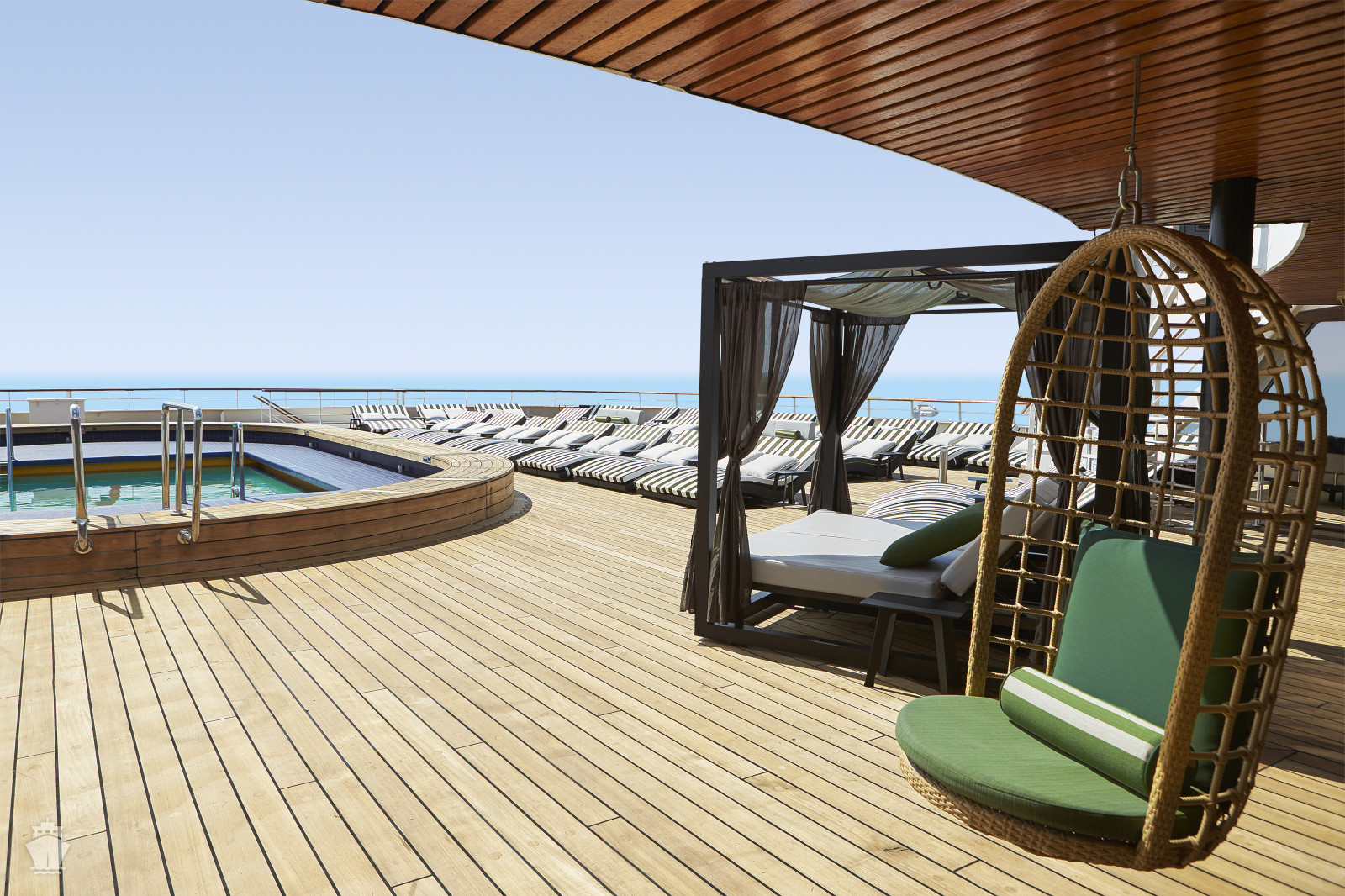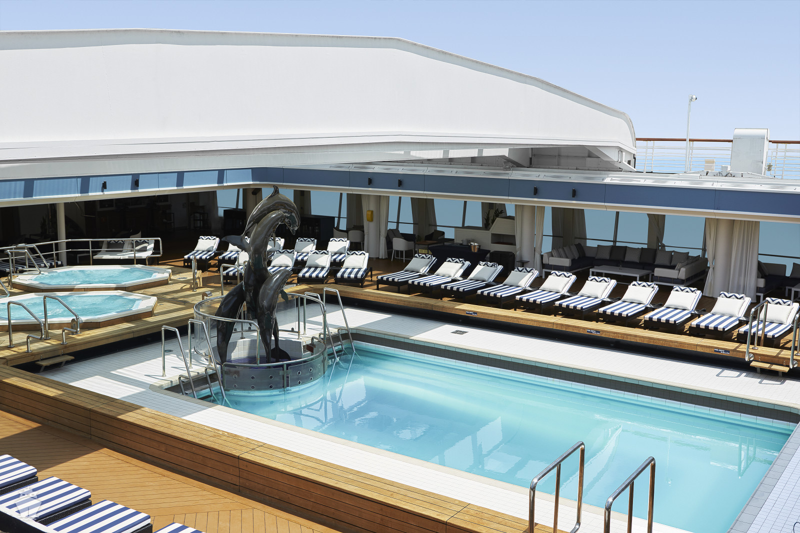 Hlavná bazénová terasa (paluba 11) má veľký bazén, 1 vonkajšiu vírivku/whirlpool a 2x kúpeľné bazény/vírivky. Celý priestor bazéna je zastrešený sťahovacou sklenenou strechou.