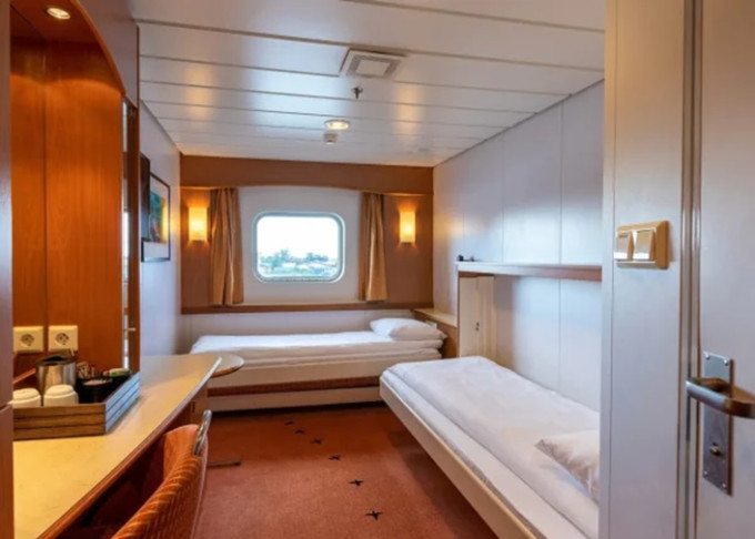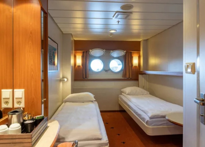 P2 - Vonkajšia kajuta Arctic Superior 10-11 m². Neotvárateľné okno. Oddelené postele, Tv, varná kanvica. Max 2 osoby. | 5 888 € 2 944 € za osobu | ||