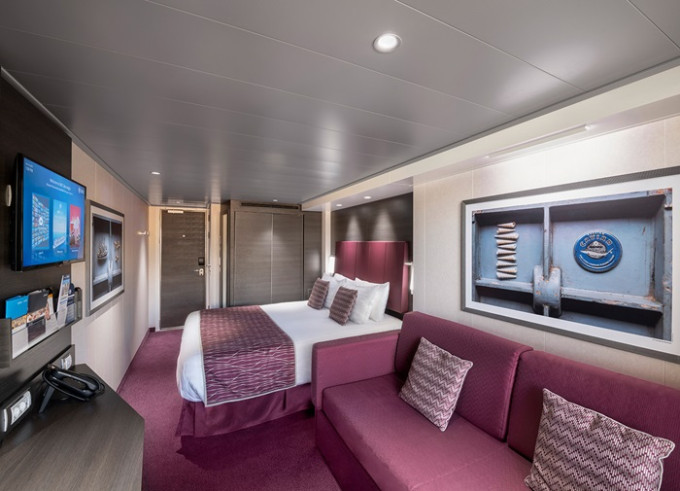 Vo všetkých kajutách sa nachádza regulovateľná klimatizácia, safe, kúpeľňa so sprchou, sušič na vlasy, telefón, interaktívna Tv s plochou obrazovkou, minibar. Oddelené postele sa na požiadanie dajú spojiť do manželskej.