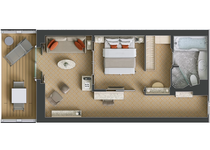DX - Deluxe Veranda Suite 30 m² + balkón 6 m². 6,7,8. paluba - stred. Max 3 osoby. | 14 525 € 14 525 € za osobu |