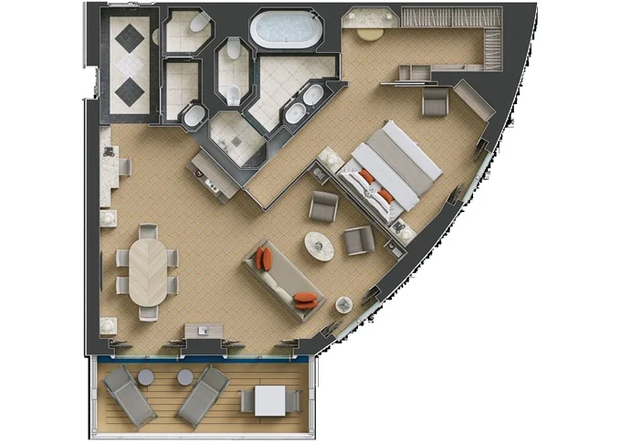 R1 - Royal Suite 1 105 m² (vrátane balkónu). 7. paluba vpredu. Max 3 osoby. | 25 200 € 25 200 € za osobu | ||