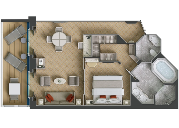 SV - Superior Veranda Suite 30 m² + balkón 6 m². 7,8,9. paluba. Max 3 osoby. | 14 175 € 14 175 € za osobu | ||