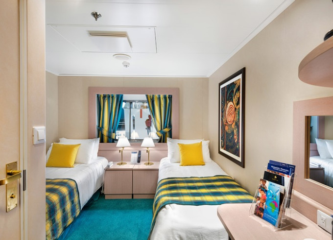 OM1 - Vonkajšia kajuta Junior Fantastica 13 m². Neotvárateľné okno. 7-8. paluba. Cenový model Fantastica. | 2 400 € 800 € za osobu | ||