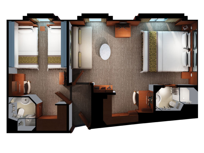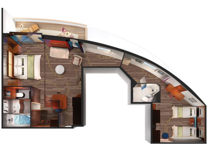 S4 - Deluxe Family Suite od 56 m² / balkón 9 m². 9. paluba - vpredu. Max 5 osôb. Výhody Suite. | 17 642 € 8 821 € za osobu |
