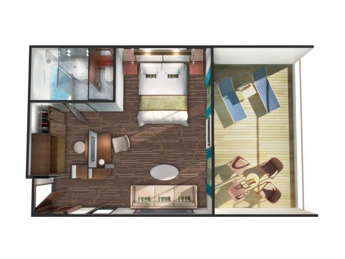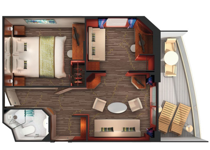 SG -Family Suite Aft-Facing 31 m² / balkón 8 m². 7. až 10. paluba - vzadu. Max 3-6 osôb. Výhody Suite. | 12 338 € 6 169 € za osobu | ||