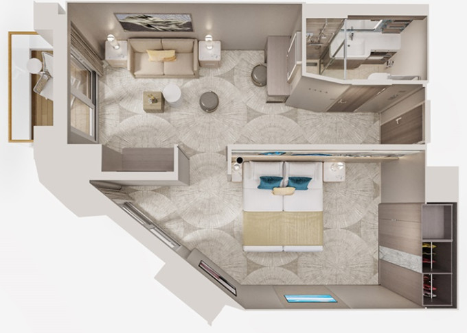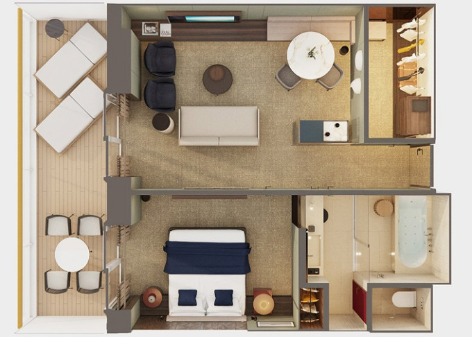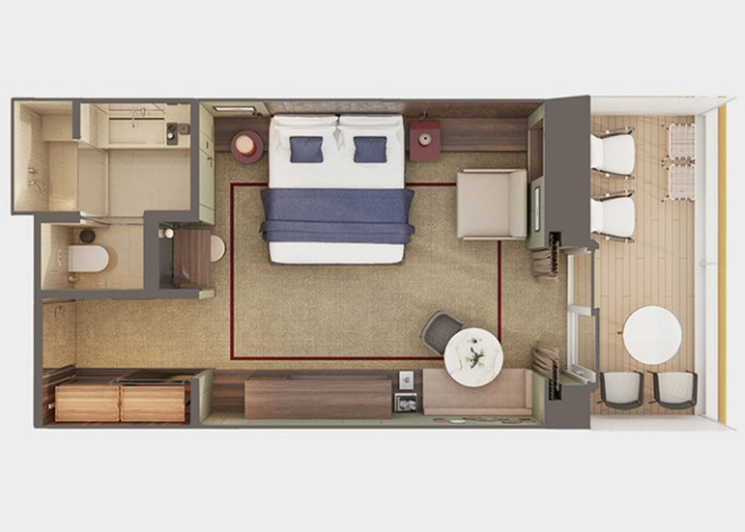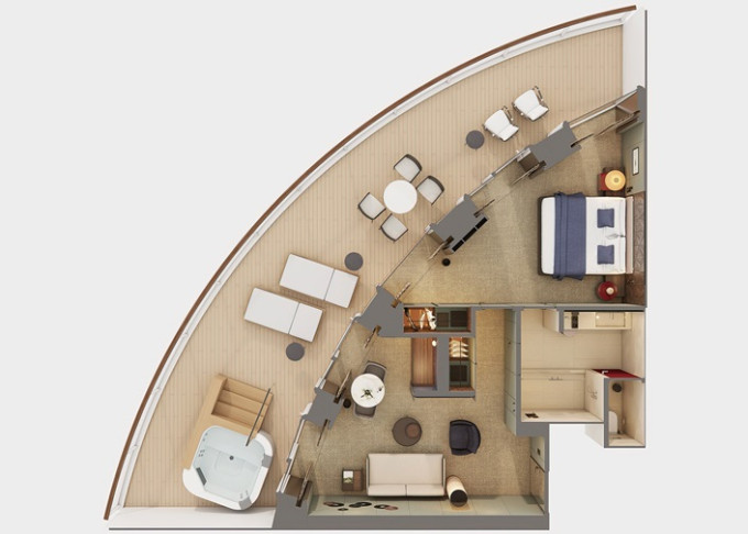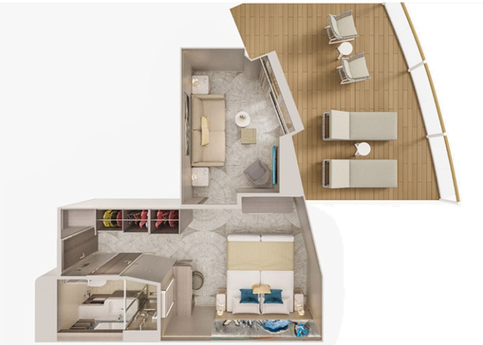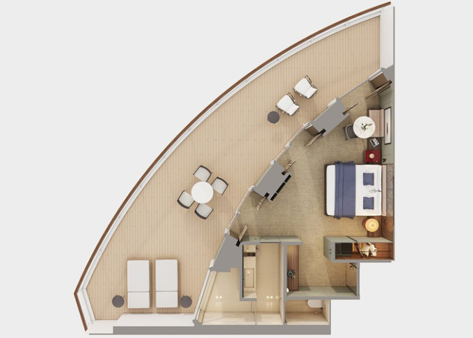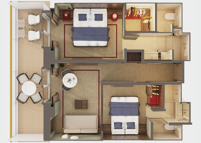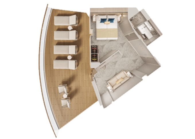 SK - Suite s veľkým balkónom Forward-Facing od 38 m² / balkón od 14 m². 9. až 13. paluba - vpredu. Max 4 osoby. Výhody Suite. | 13 180 € 6 590 € za osobu | ||
