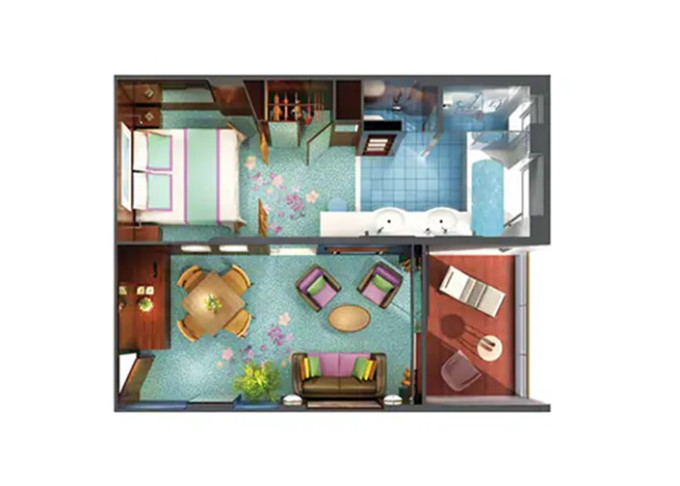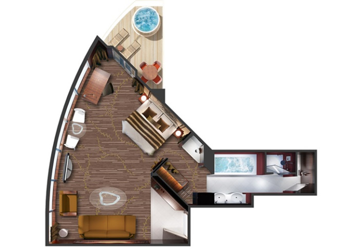 M1 - Club Suite Aft-facing od 25 m² / balkón 5-8 m². 11. paluba - vzadu. Max 4 osoby. Výhody Club. | 6 518 € 3 259 € za osobu | ||
