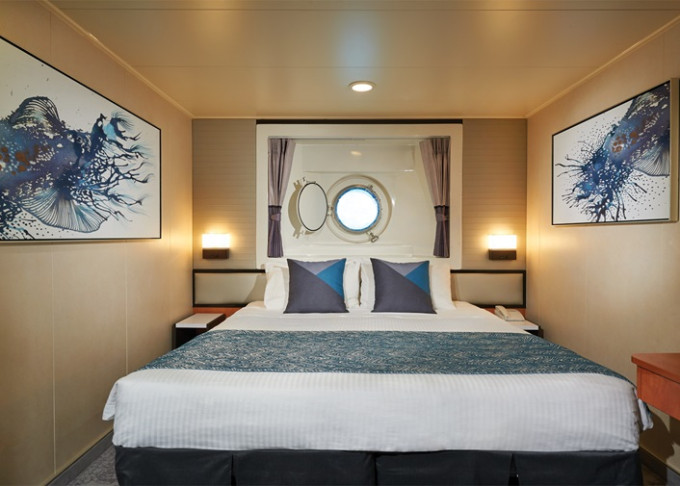 OB - Vonkajšia kajuta s veľkým oknom 12-14 m². Veľké neotvárateľné okno. 5. paluba - vpredu, vzadu. Max 3 osoby. | 3 098 € 1 549 € za osobu | ||