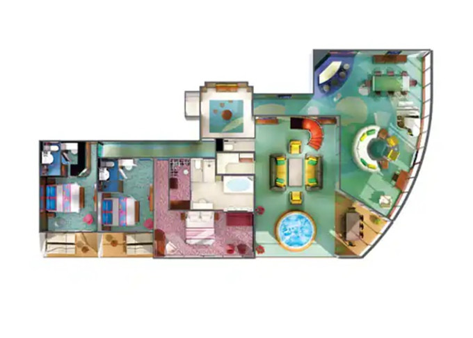 S4 - Deluxe Family Suite - 2 spálne 50 m² / balkón 5 m². Výhody Suite. 11. paluba - vpredu, stred. Max 6 osôb. | 9 170 € 4 585 € za osobu | ||