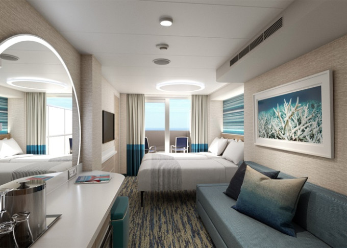 7S - Kajuta s balkónom Cloud 9 Spa Cove 19 m² + balkón s chráneným výhľadom 4 m². 5. paluba vpredu. Voľný vstup do Spa a balíček Cloud 9 Spa. | 2 110 € 1 055 € za osobu | ||