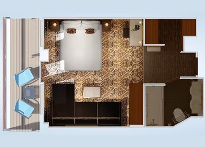 TL - Kajuta s veľkým balkónom Premium Terrazza 17 m² + veľký balkón 9 m². 6,7,8,9. paluba - vzadu. Výhody Terrazza Carnevale. | 2 884 € 1 442 € za osobu | ||